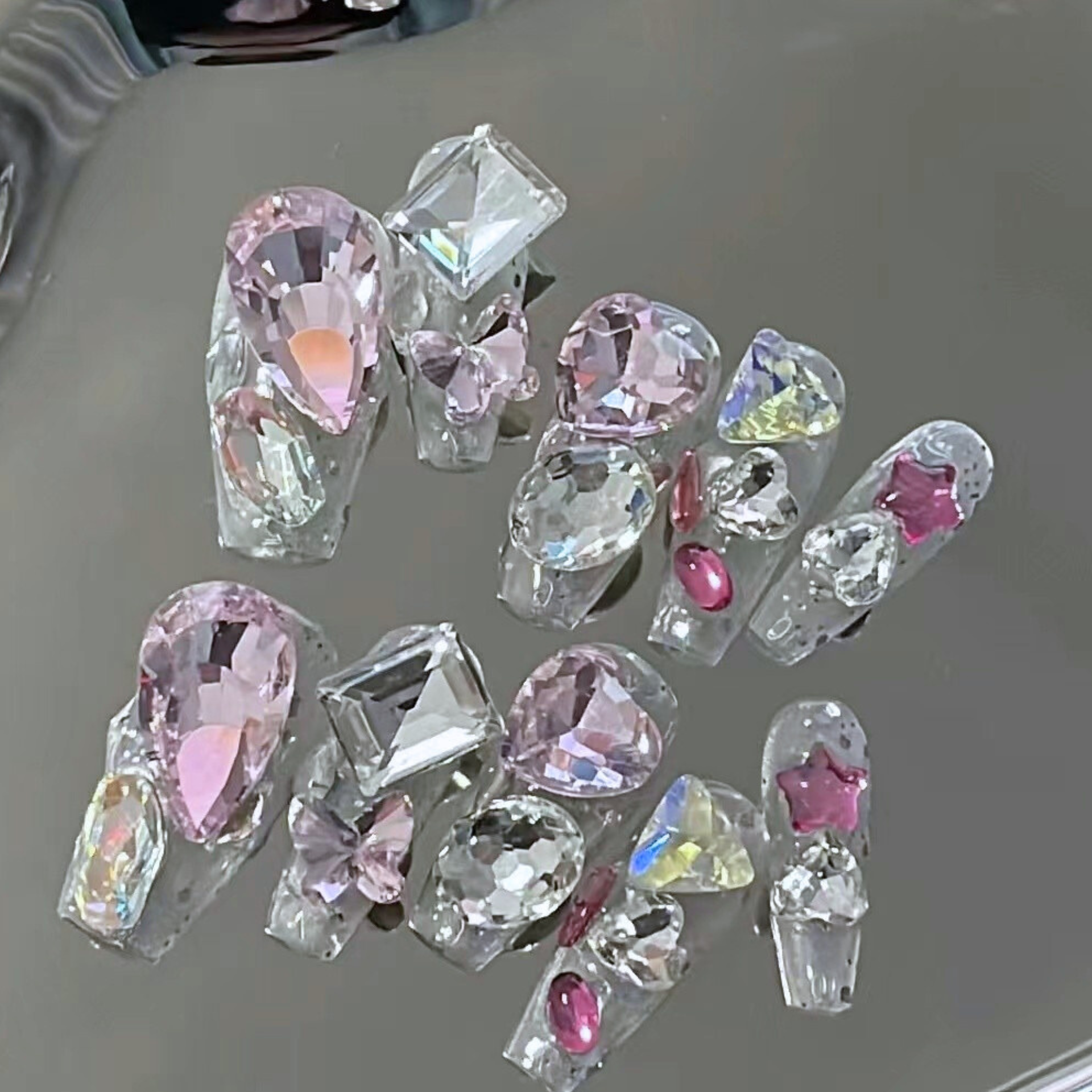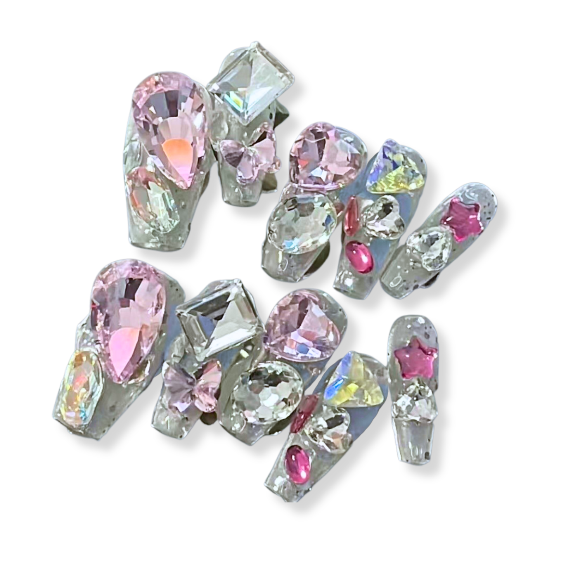 These nails don't just dazzle; they're crafted with care. Every gemstone is securely set, ensuring a comfortable and enduring wear. Whether you're commemorating a special moment or simply expressing your fondness, "Bling It On - Love" press-on nails are the perfect choice to manifest the Love Vibes.