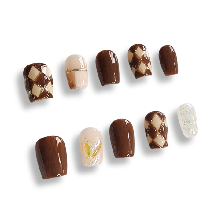 Nallio Coffee & Argyle. Sophisticated and charming, have fun with this diverse set. From creamy argyle to rich espresso tones and adorable 3D hearts, embrace a chic and caffeinated vibe.