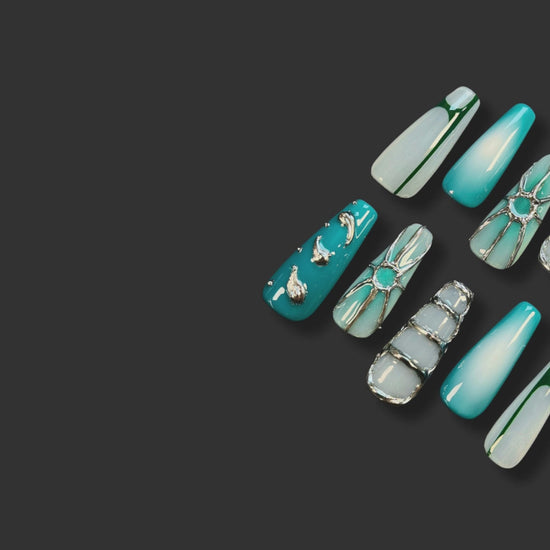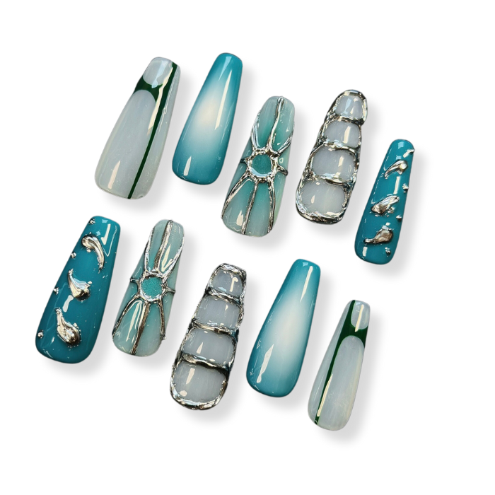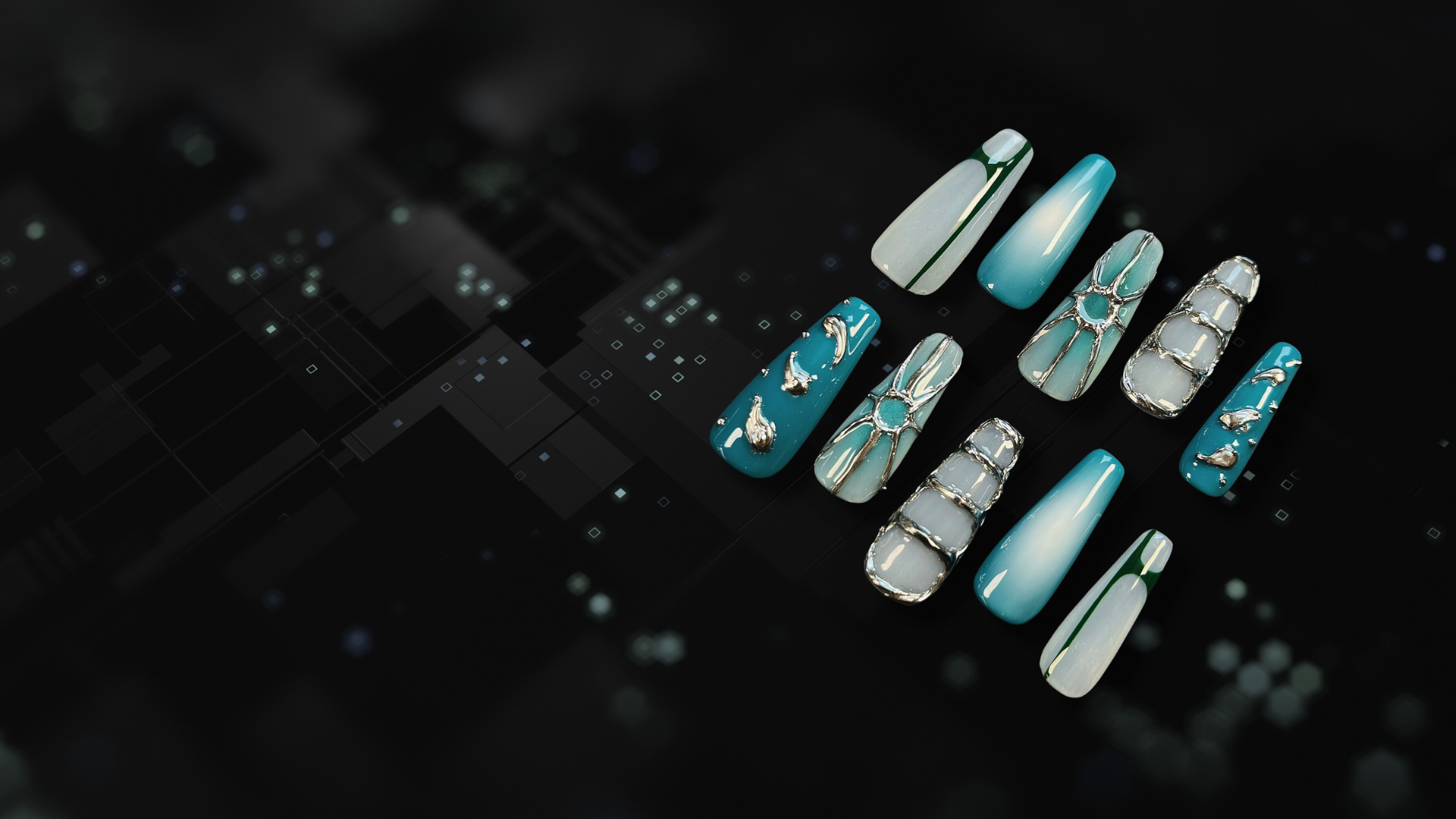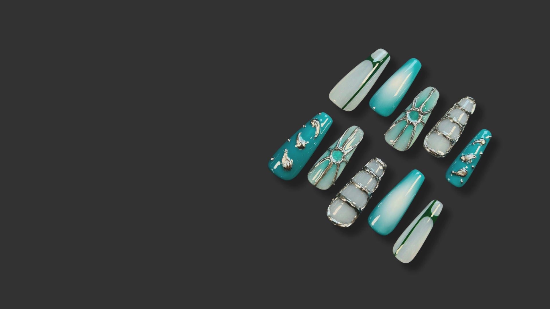 Nallio Cyber Ice handmade nails, are frosty, futuristic designs inspired from another galaxy. The "Cyber Ice" style embodies the essence of the future, with an icy twist that's straight-up mesmerizing.
